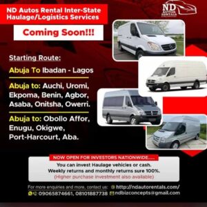 We offer a wide range of vehicles including clean Nigerian-used cars, direct Tokunbo (foreign-used) models, and brand-new options. Our vehicle solutions are tailored to your needs — whether you’re buying, leasing, or renting. With NDGROUP, you get verified, roadworthy cars at affordable prices, with full documentation and support.
